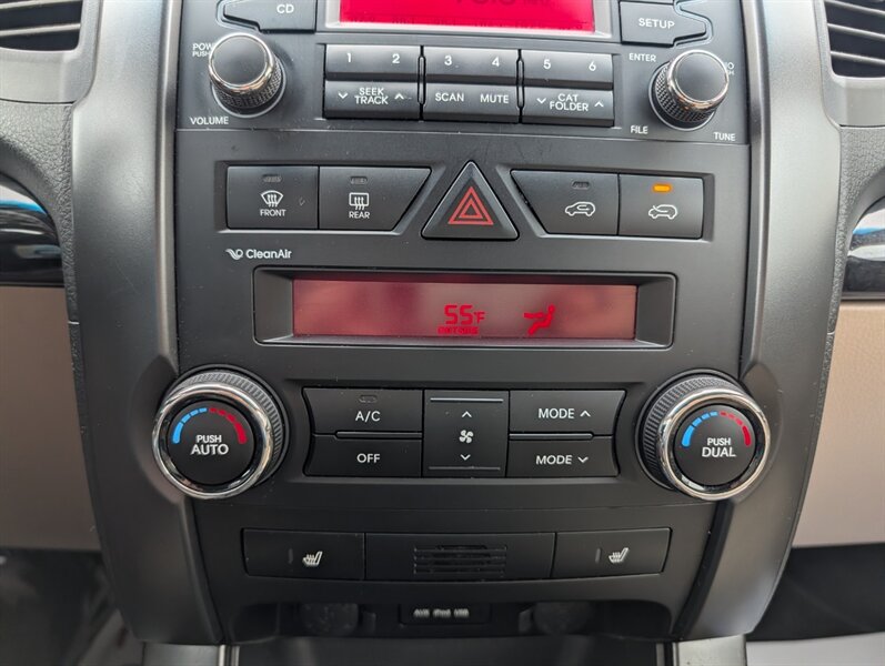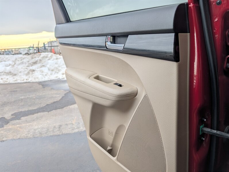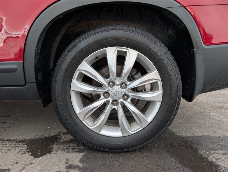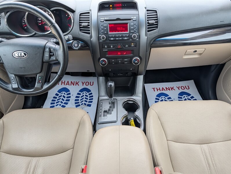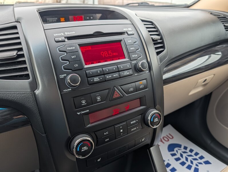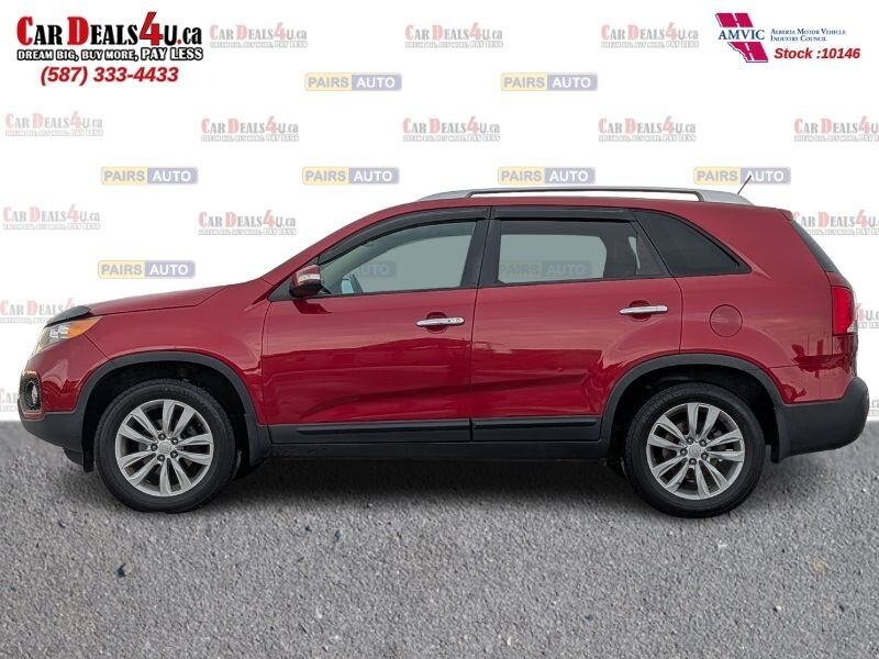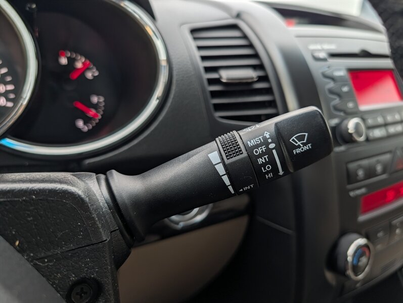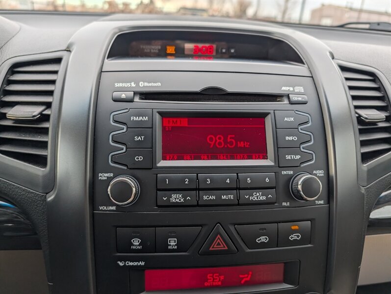 2011 Kia Sorento EX in Spicy Red with a Beige interior, in excellent overall condition. Powered by a 3.5L V6 producing 276 hp and 248 lb-ft, paired with a 6-speed automatic transmission (all-wheel drive). Factory-equipped EX features include leather-trimmed heated front seats with power driver adjustment,18-inch alloy wheels, fog lamps, dual-zone automatic climate control, cruise control, steering-wheel audio controls, Bluetooth hands-free, AM/FM/CD/MP3 audio with auxiliary input and satellite capability, power windows/locks/mirrors, keyless entry, and safety systems such as ABS, electronic stability and traction control, multiple airbags and tire pressure monitoring.