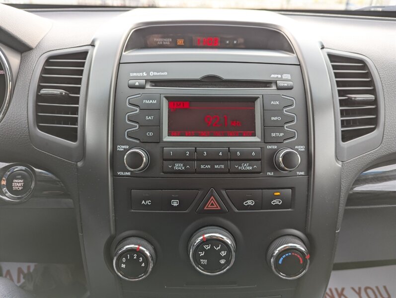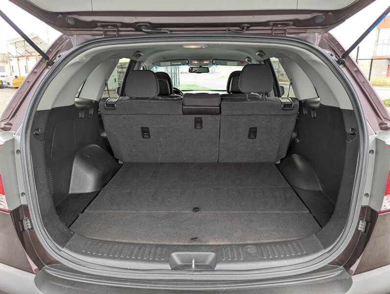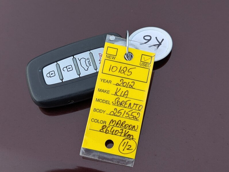 The 2012 Kia Sorento LX is a versatile midsize SUV that combines style and functionality. Powered by a robust 3.5L V6 engine delivering 276 horsepower and 248 ft-lbs of torque, it offers a smooth and responsive driving experience. The exterior is finished in a sleek Ebony Black, providing a sophisticated look, while the interior features a comfortable Gray cloth upholstery that accommodates up to five passengers. Standard features include a keyless entry system, power windows and locks, and air conditioning for added comfort. The Sorento is equipped with a 6-speaker audio system, which includes a CD player, auxiliary input, and Bluetooth connectivity for hands-free calling. Safety features include electronic stability control, traction control, and a suite of airbags to ensure peace of mind on the road. With its spacious interior and practical design, the 2012 Kia Sorento LX is an excellent choice for families and adventurers alike.