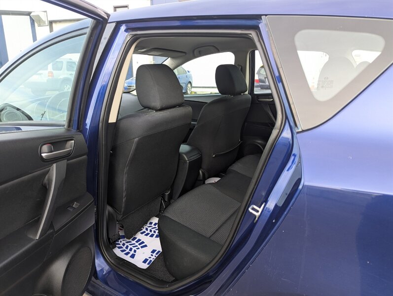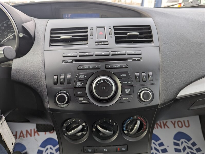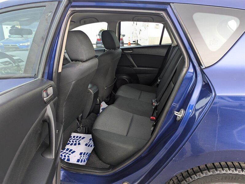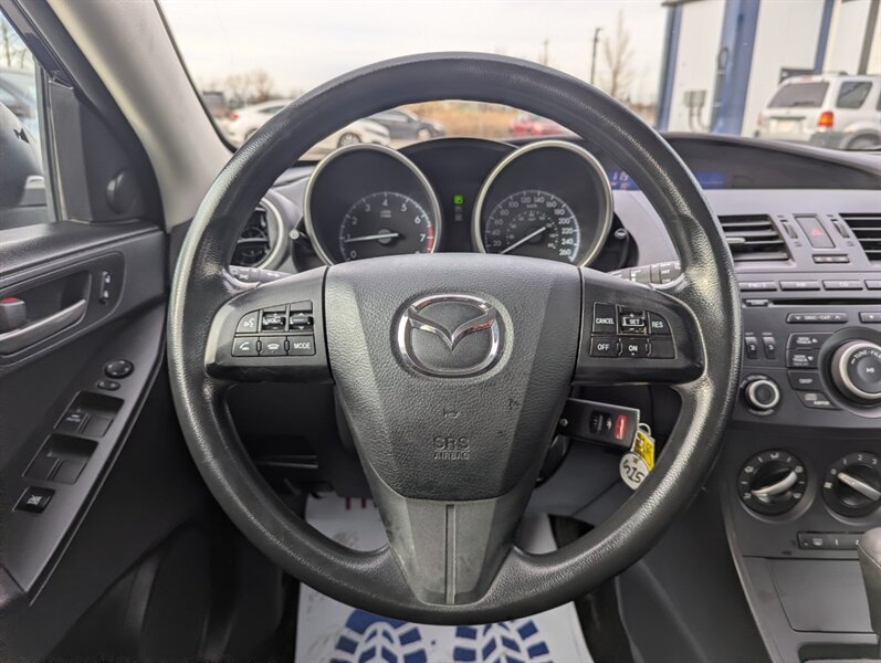 Hail Special//The 2013 Mazda MAZDA3 Sport GX is a compact hatchback that combines functionality with sporty design. This model comes equipped with a 2.0-liter 4-cylinder engine, delivering a balanced mix of performance and fuel efficiency. Standard features include a 5-speed automatic transmission, front-wheel drive, and 16-inch steel wheels. Inside, the MAZDA3 Sport GX offers comfortable seating for five, with cloth upholstery and a 60/40 split-folding rear seat for versatile cargo space. The dashboard is designed with user-friendly controls, featuring a 7-inch display, AM/FM radio, and a CD player. Bluetooth connectivity allows for hands-free calling and audio streaming. Additional features include power windows, power door locks, and remote keyless entry. Safety is prioritized with standard anti-lock brakes, front and side airbags, and stability control. This vehicle is in excellent overall condition, making it a reliable choice for those seeking a practical yet stylish hatchback.