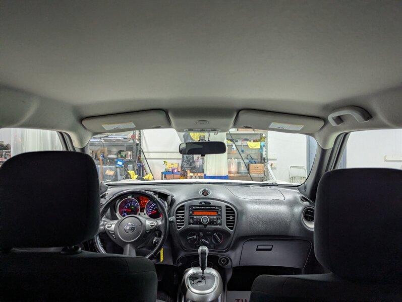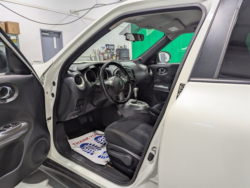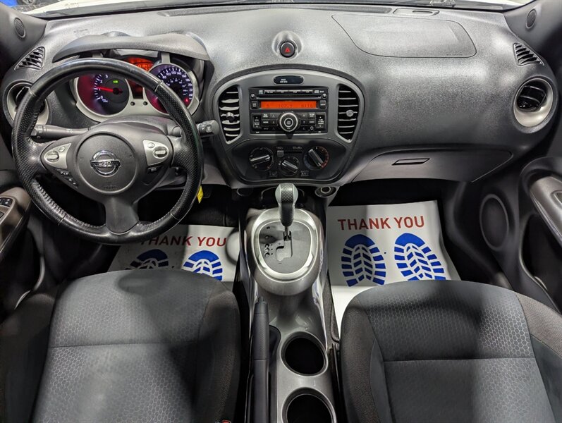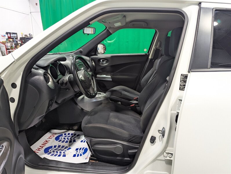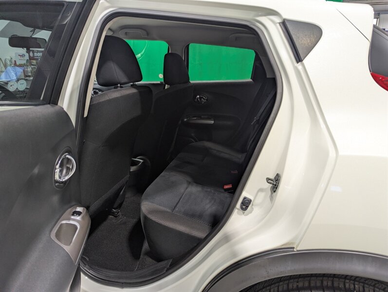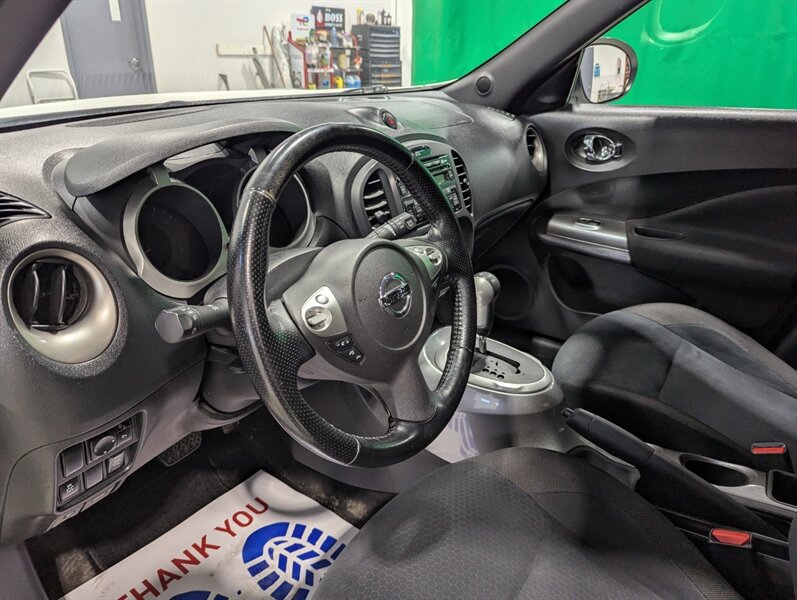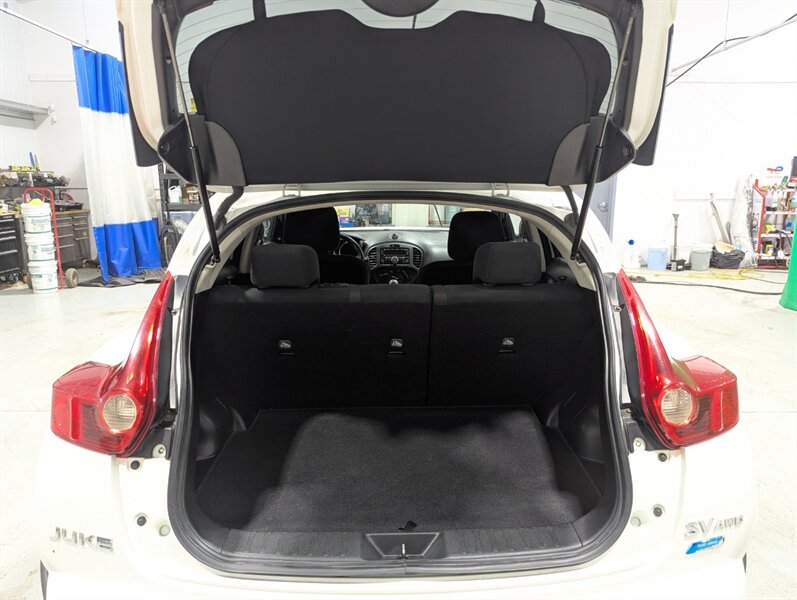 The 2013 Nissan JUKE SV is a compact crossover that combines sporty performance with practical features. Powered by a 1.6L Turbo I4 engine, it delivers 188 horsepower and 177 lb-ft of torque, ensuring an engaging driving experience. The exterior showcases a distinctive design, highlighted by 17-inch alloy wheels and available fog lights. Inside, the JUKE SV comes equipped with a range of factory default features designed for comfort and convenience. The cabin features cloth upholstery, a 6-speaker audio system with a CD player, and Bluetooth connectivity for hands-free calling and audio streaming. The vehicle also includes a 5.8-inch touchscreen display, which supports navigation and integrates with compatible smartphones. Additional features include keyless entry, push-button start, and a rearview camera for enhanced visibility while parking. The JUKE SV also offers a spacious cargo area with a 60/40 split-folding rear seat to accommodate larger items. With its excellent overall condition, this vehicle is ready for both daily commutes and weekend adventures.