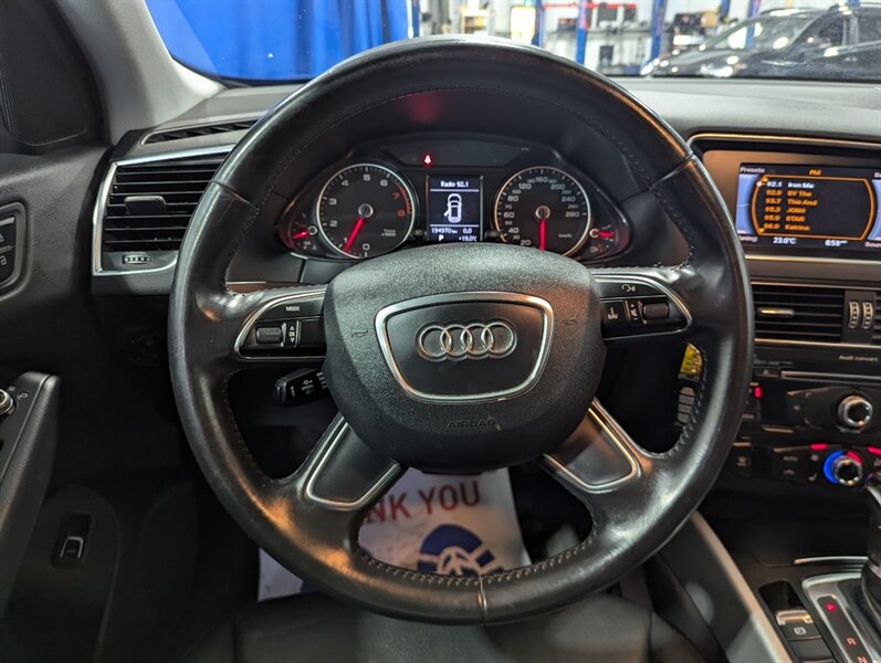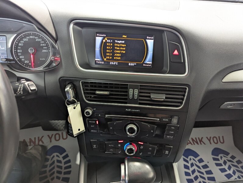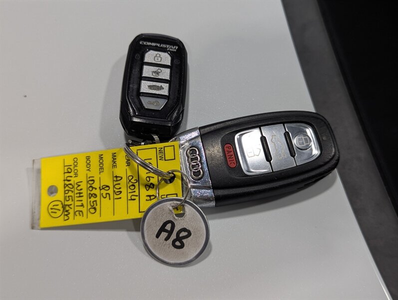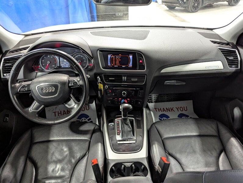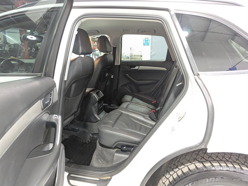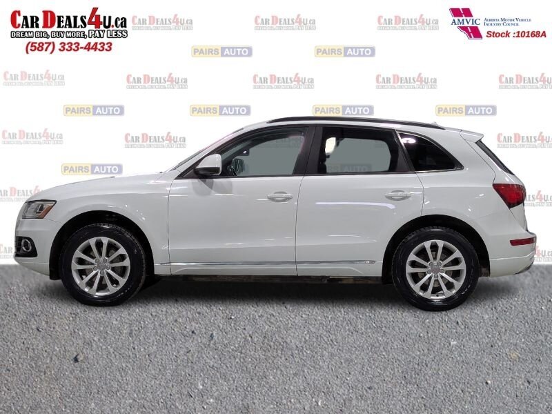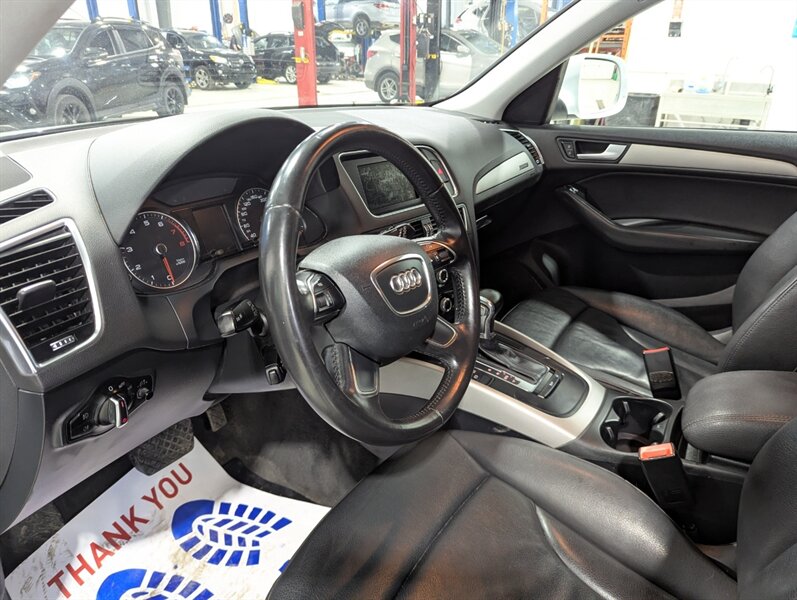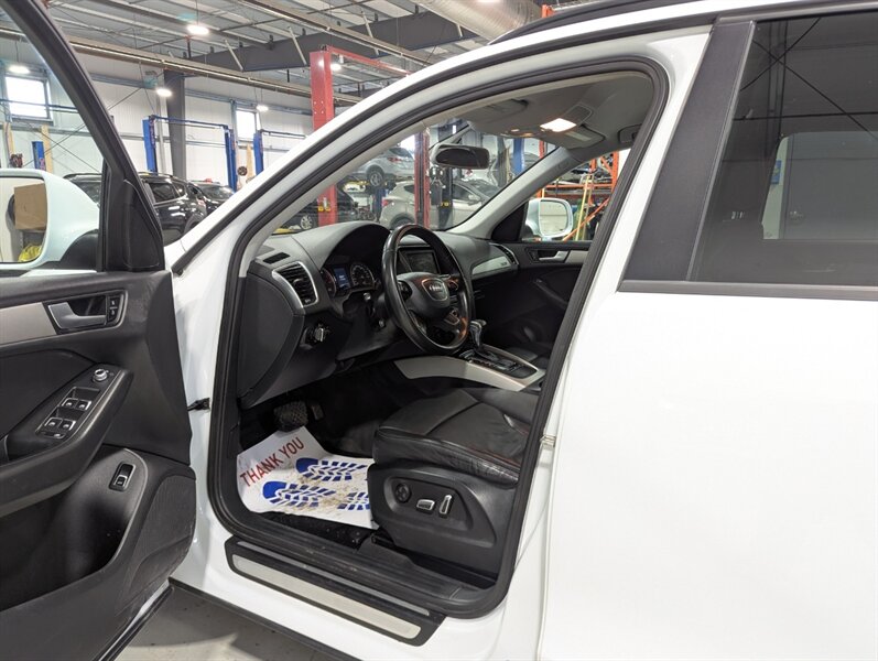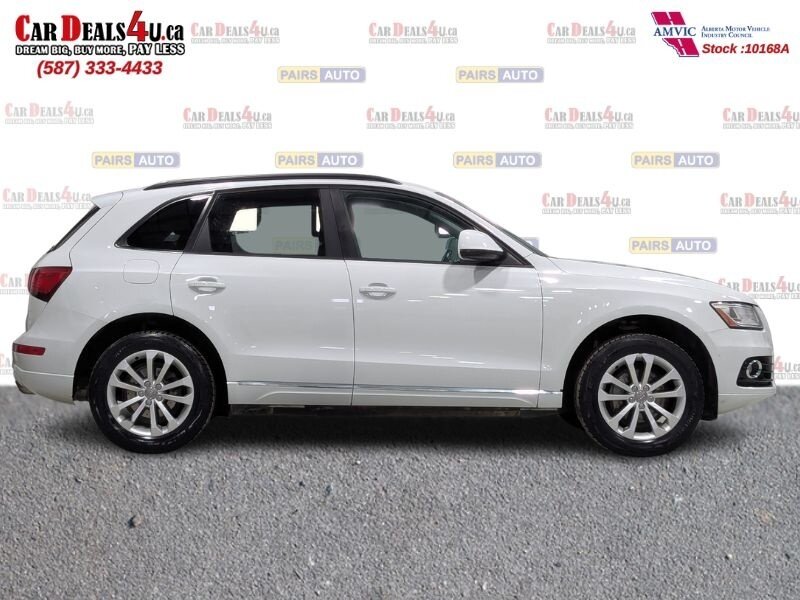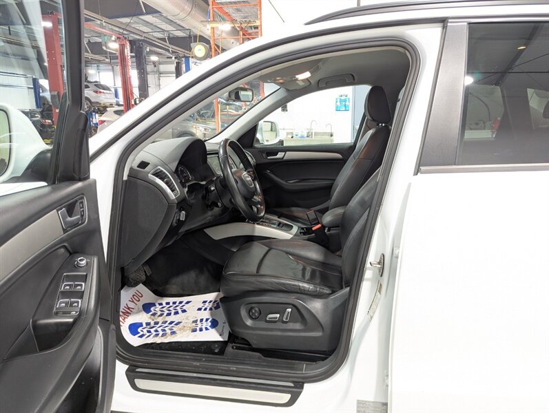 2014 Audi Q5 2.0T quattro Komfort, exterior White, interior not specified. This vehicle is in excellent overall condition. Factory-equipped with a 2.0L turbocharged four-cylinder and Audi quattro all-wheel drive paired with an automatic transmission. Standard comfort and convenience features include power-adjustable front seats (with driver memory), heated front seats, dual-zone automatic climate control, power windows/locks/mirrors, roof rails and a power liftgate. Infotainment and connectivity are handled by Audi MMI with center display, Bluetooth hands-free and audio streaming, AM/FM/CD and auxiliary/USB inputs, plus steering-wheel audio and cruise controls. Safety and chassis systems include antilock brakes (ABS), electronic stability control, traction control and multiple airbags. Exterior highlights include alloy wheels and integrated fog lights.