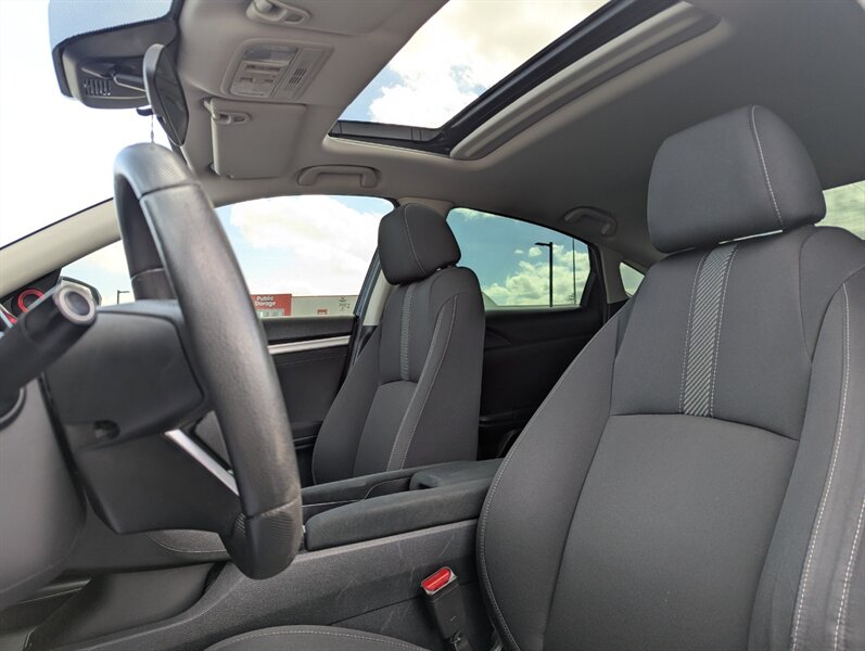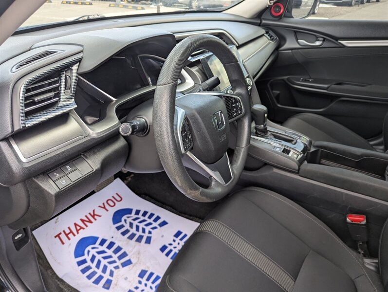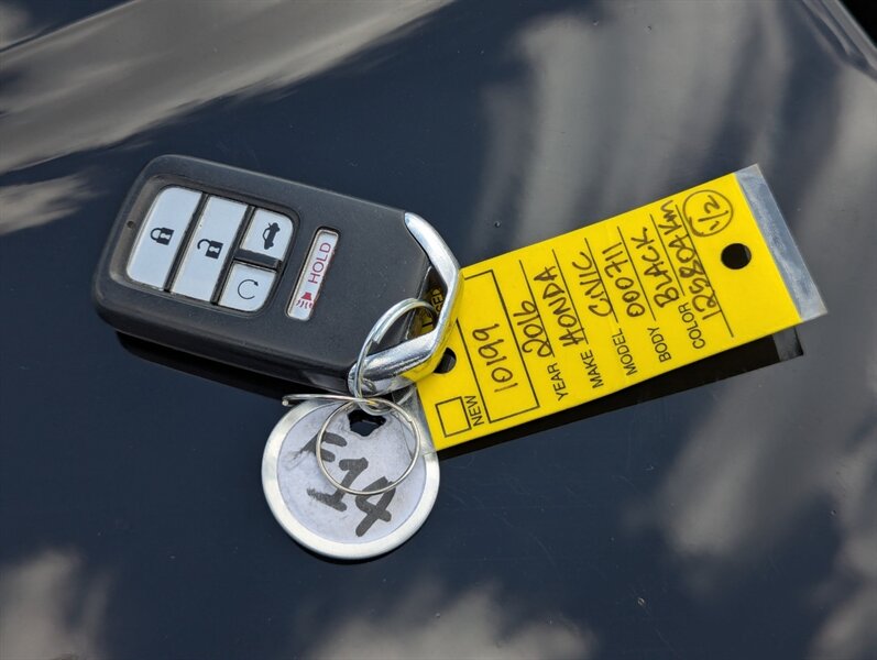 REBUILT STATUS//2016 Honda Civic EX with Honda Sensing — powered by the 2.0L I4 (158 hp / 138 lb-ft) and in excellent overall condition. Factory features include: Honda Sensing driver-assist suite (forward collision mitigation with automatic braking, adaptive cruise control, lane-keeping assistance and road-departure mitigation). 7-inch Display Audio touchscreen with HondaLink, Bluetooth HandsFreeLink and audio streaming, USB/AUX inputs and SiriusXM/HD Radio compatibility. Convenience and comfort: proximity keyless entry with push-button start, multi-angle rearview camera, automatic climate control, tilt/telescoping steering column and steering-wheel mounted audio/phone/cruise controls. Safety and chassis: ABS, Vehicle Stability Assist (VSA) with traction control, comprehensive airbag coverage and Honda’s ACE body structure. Practical interior/exterior: cloth seating, 60/40 split-folding rear seat, power windows/locks and alloy wheels.