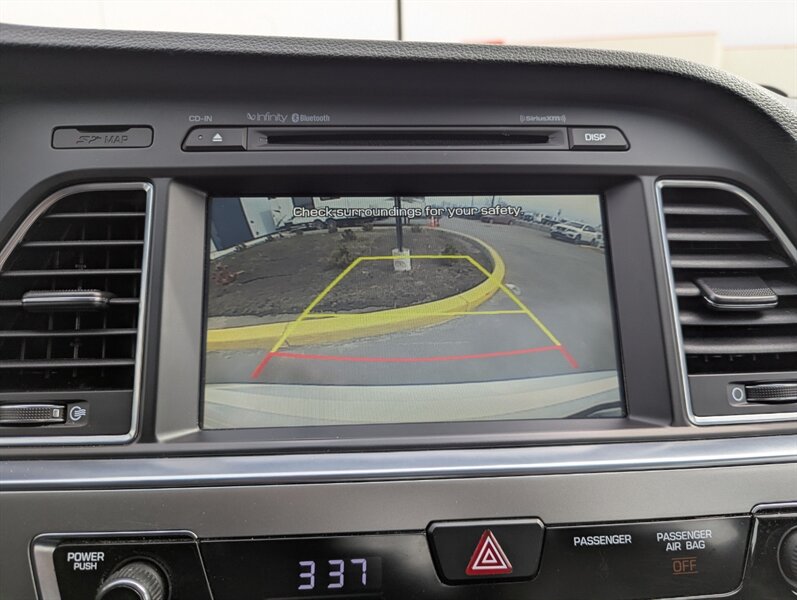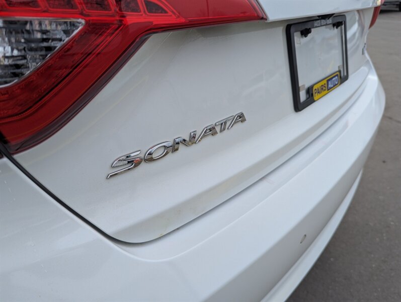 2016 Hyundai Sonata Sport powered by a 2.4L I4 producing 185 hp and 178 lb-ft of torque, finished in Quartz White Pearl; interior color not specified. Factory equipment includes power windows, locks and mirrors, remote keyless entry, cruise control, steering-wheel audio and phone controls, Bluetooth hands-free connectivity, AM/FM/CD/USB/AUX audio, cloth sport seating with folding rear seatback, automatic climate control, alloy wheels and projector-style headlamps. Standard safety features include ABS, electronic stability and traction control, and front, side and curtain airbags. This vehicle is in excellent overall condition.