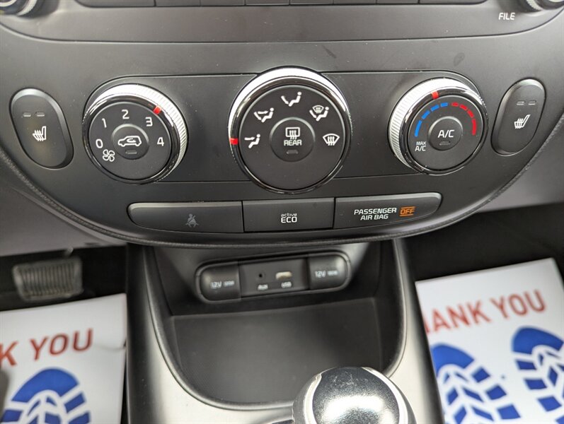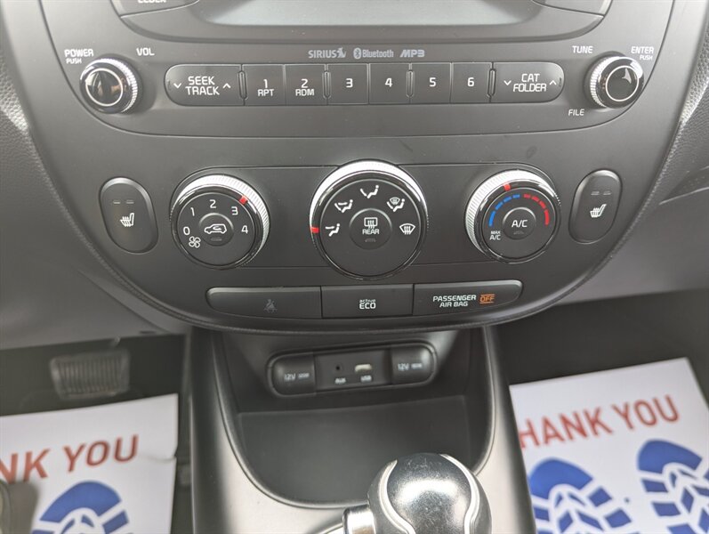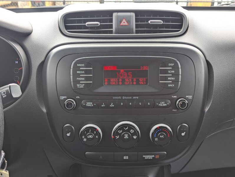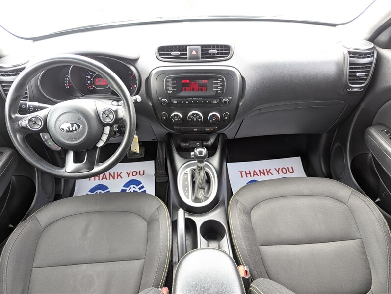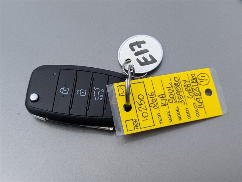 2016 Kia Soul EX — Gray exterior; interior color not specified. This EX trim is factory-equipped with convenience and comfort features such as remote keyless entry, power windows and locks, air conditioning, cruise control, heated front seats and a 60/40 split-folding rear seat for added cargo flexibility. Infotainment includes Bluetooth hands-free calling and audio, USB/Aux inputs and a factory-installed touchscreen UVO system. Safety and chassis equipment installed at the factory includes anti-lock brakes, electronic stability control, traction control, front/side/curtain airbags and tire pressure monitoring. The vehicle is in excellent overall condition.