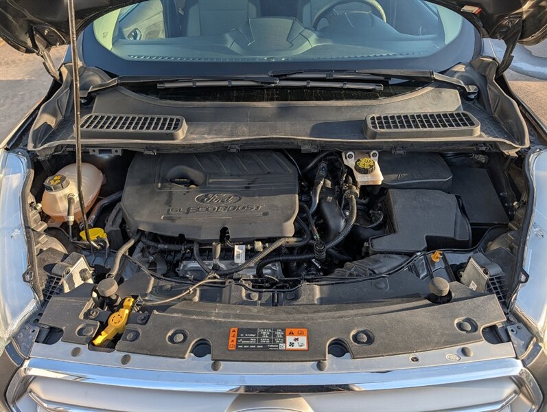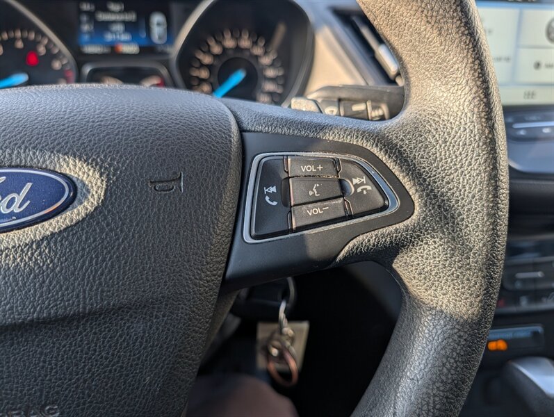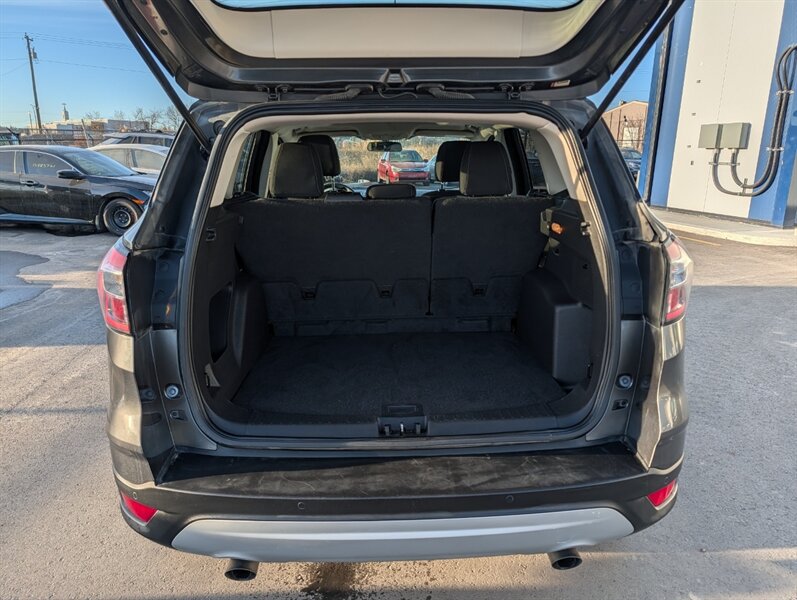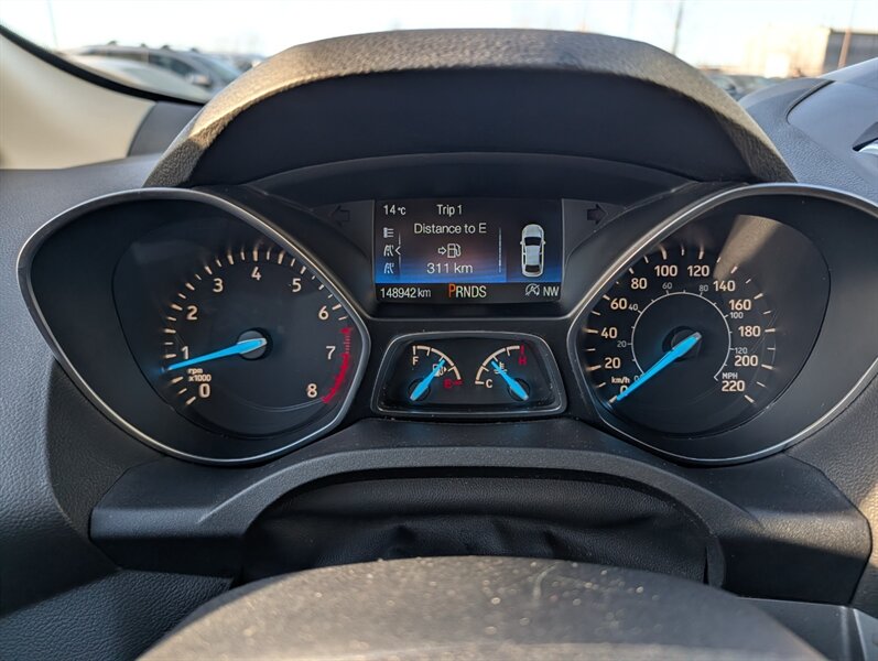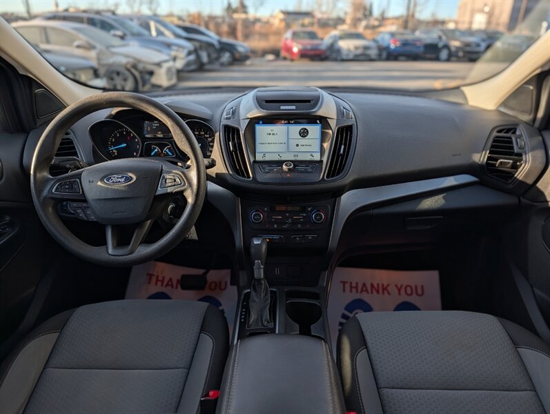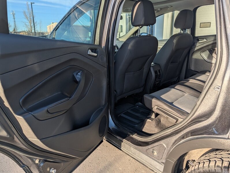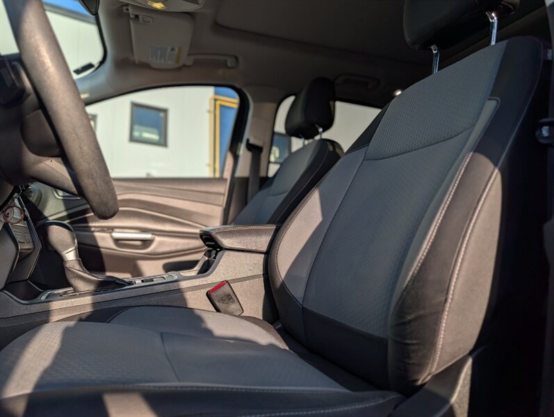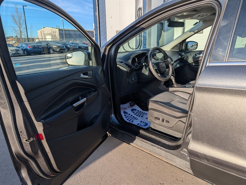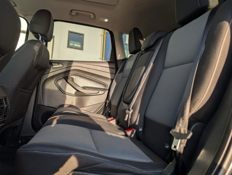 2017 Ford Escape SE in Magnetic with Charcoal Black interior — powered by a 1.5L EcoBoost Turbo I4 (179 hp / 177 lb-ft) and in excellent overall condition. Factory-standard features include:- Safety: multiple airbags, ABS brakes, traction and stability control, and tire pressure monitoring for peace of mind.- Convenience & Comfort: power windows and locks, remote keyless entry, cruise control, cloth seating with 60/40 split-folding rear seats for flexible cargo space, and efficient air conditioning.- Infotainment & Connectivity: Ford SYNC with voice controls, Bluetooth hands-free calling and audio streaming, plus USB and auxiliary inputs and steering-wheel audio/phone controls.- Exterior & Utility: Magnetic paint, alloy wheels, heated/adjustable mirrors and a practical liftgate for cargo access.