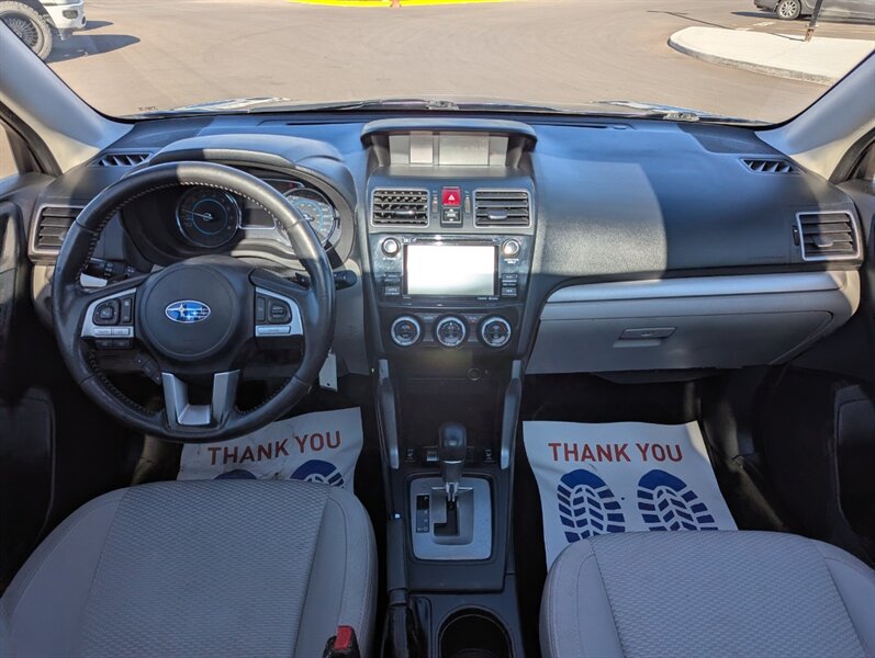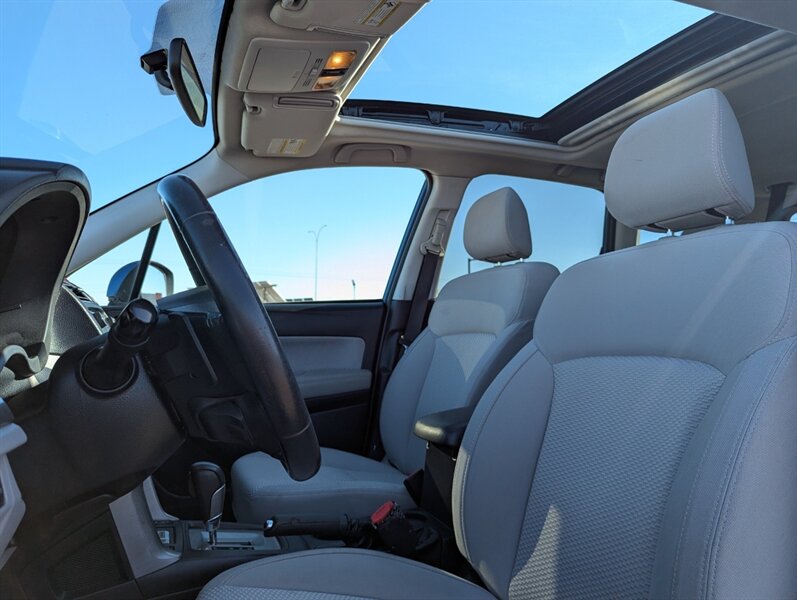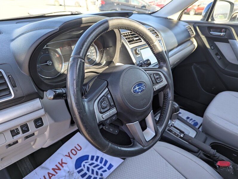 The 2017 Subaru Forester 2.5i Touring offers a blend of versatility and comfort, making it a great choice for both daily commutes and outdoor adventures. This model comes equipped with a 2.5-liter four-cylinder engine, producing 170 horsepower, paired with a continuously variable transmission (CVT) for smooth acceleration. Standard features include Subaru's renowned Symmetrical All-Wheel Drive, ensuring optimal traction in various driving conditions. The Touring trim adds a range of premium features such as a power liftgate, leather upholstery, and a panoramic sunroof, enhancing the driving experience. Inside, the Forester boasts a spacious cabin with ample legroom and cargo space, along with a 7-inch touchscreen infotainment system that includes Apple CarPlay and Android Auto compatibility. Additional features include a rearview camera, adaptive cruise control, and a suite of advanced safety technologies like lane departure warning and pre-collision braking. This vehicle is in excellent overall condition, making it a reliable choice for any driver.