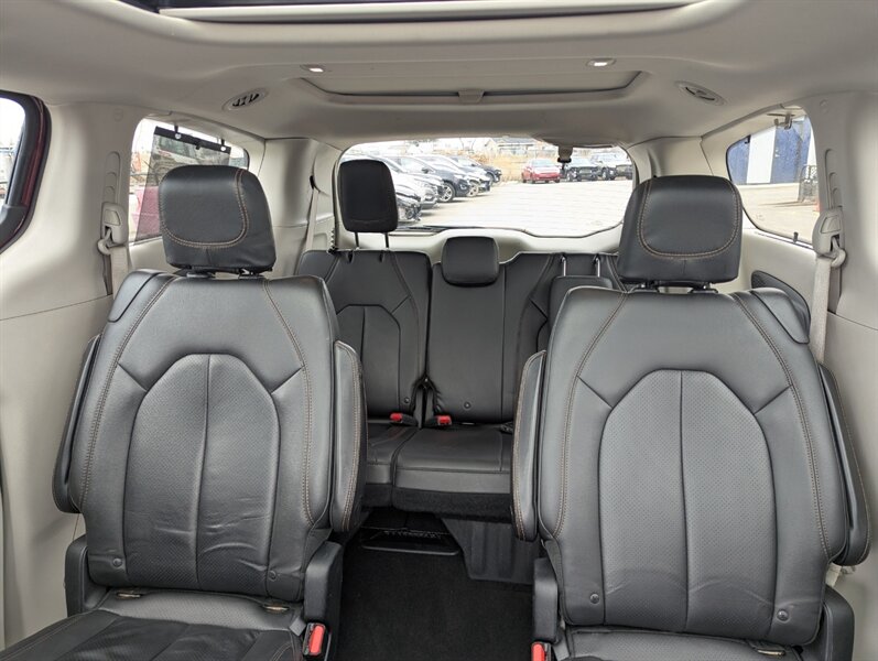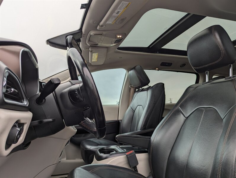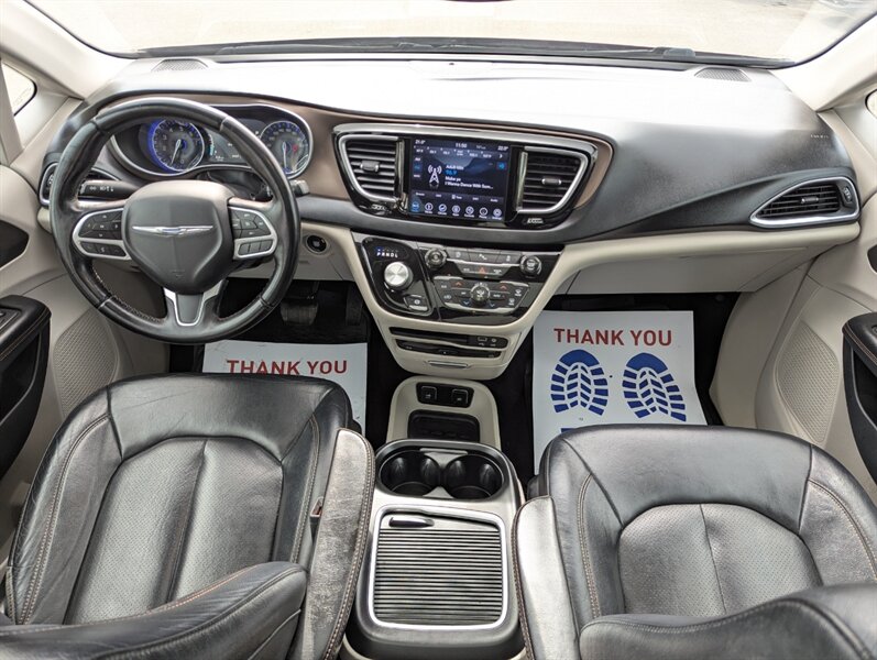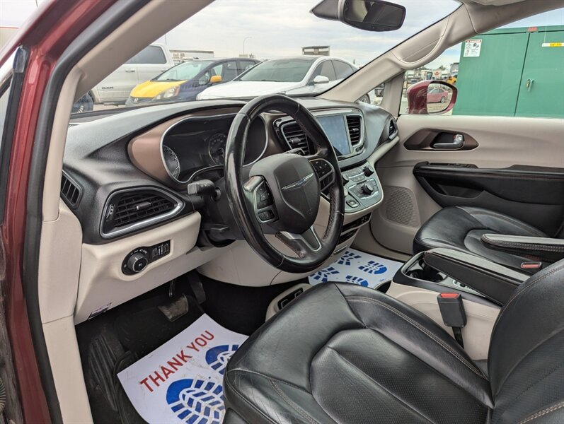 REBUILT STATUS due to theft recovery, no accidents //2018 Chrysler Pacifica Touring L Plus in excellent overall condition. Powered by the Pentastar 3.6L V6 (287 hp, 262 lb-ft) paired with a 9-speed automatic, this factory-equipped minivan features flexible fold-flat second- and third-row seating for up to seven occupants, power sliding doors and power liftgate, keyless entry with push-button start, power-adjustable driver’s seat, tri-zone automatic climate control, leather-trimmed heated front seats, Uconnect 8.4-inch touchscreen with Bluetooth, Apple CarPlay and Android Auto, multiple USB ports, rearview camera with rear parking sensors, alloy wheels, and standard safety equipment including ABS, electronic stability control and full airbag coverage.