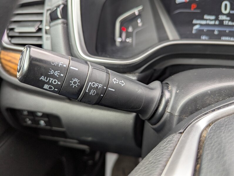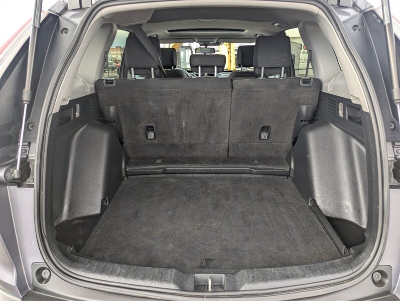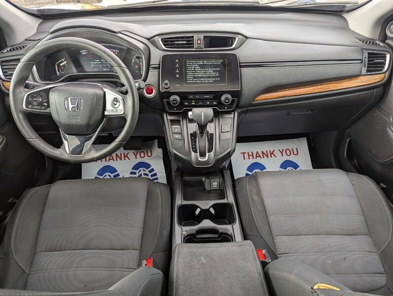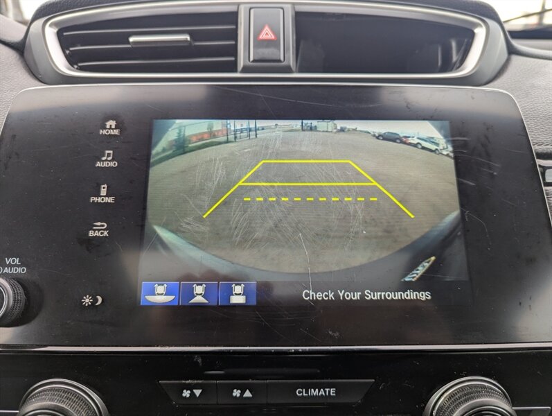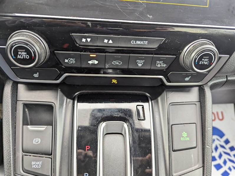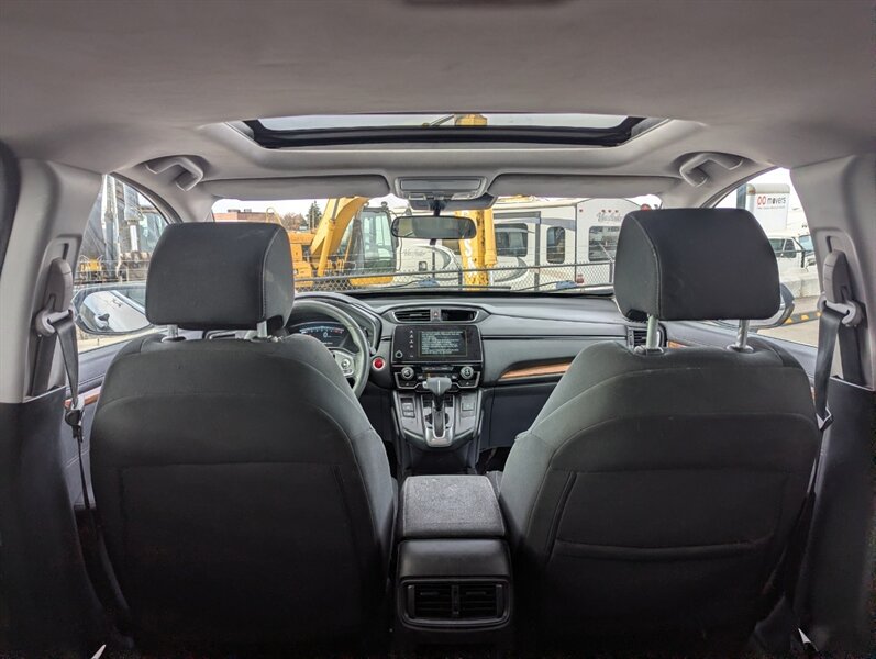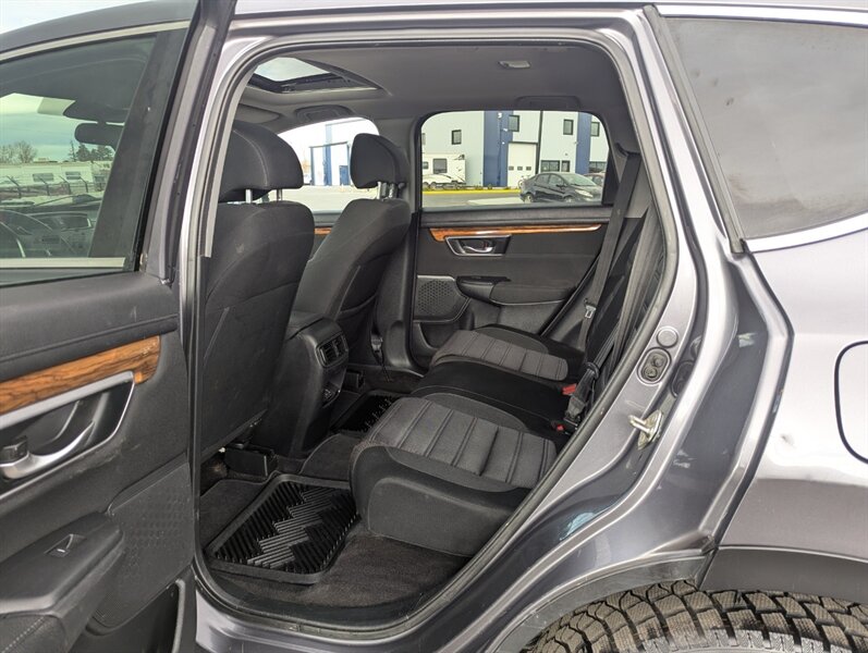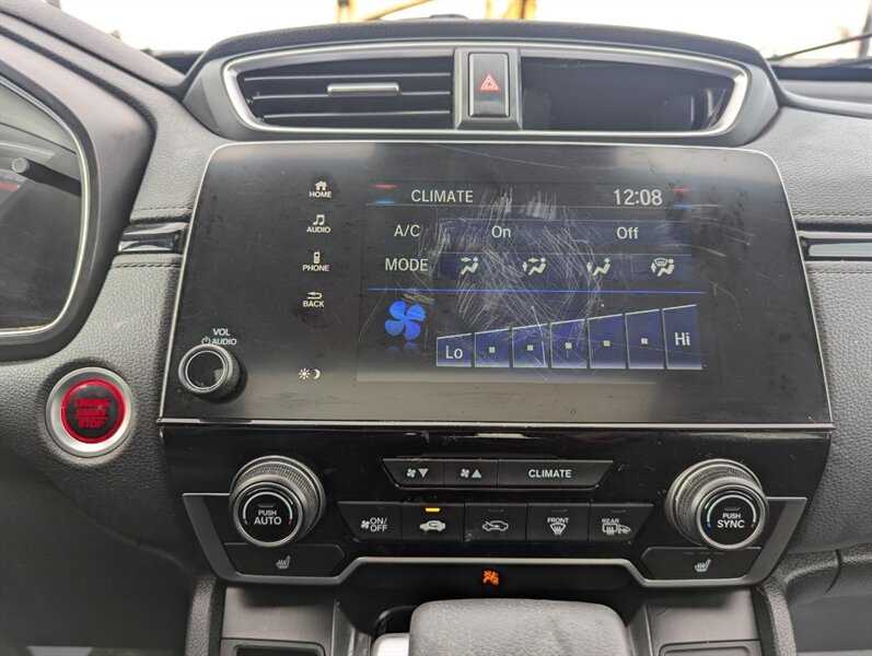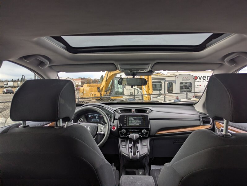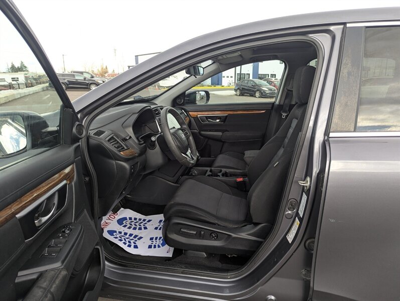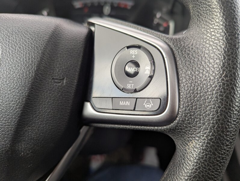 Introducing the 2018 Honda CR-V EX, a versatile and reliable SUV that combines performance with practicality. Powered by a 1.5L Turbocharged Inline-4 engine producing 190 horsepower and 179 ft-lbs of torque, this vehicle offers a smooth and efficient driving experience. The exterior showcases a sleek Gunmetal Metallic finish, while the interior features a comfortable Gray fabric that enhances passenger comfort. Standard factory features include a power moonroof, a multi-angle rearview camera, and Honda Sensing® safety suite, which encompasses collision mitigation braking, road departure mitigation, adaptive cruise control, and lane-keeping assist. Additional conveniences include a 7-inch touchscreen display with Apple CarPlay and Android Auto integration, dual-zone automatic climate control, and a spacious cargo area with a 60/40 split rear seat for added flexibility. This 2018 Honda CR-V EX is in excellent overall condition, ready to provide a dependable driving experience.