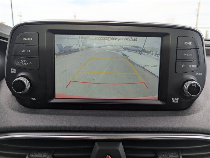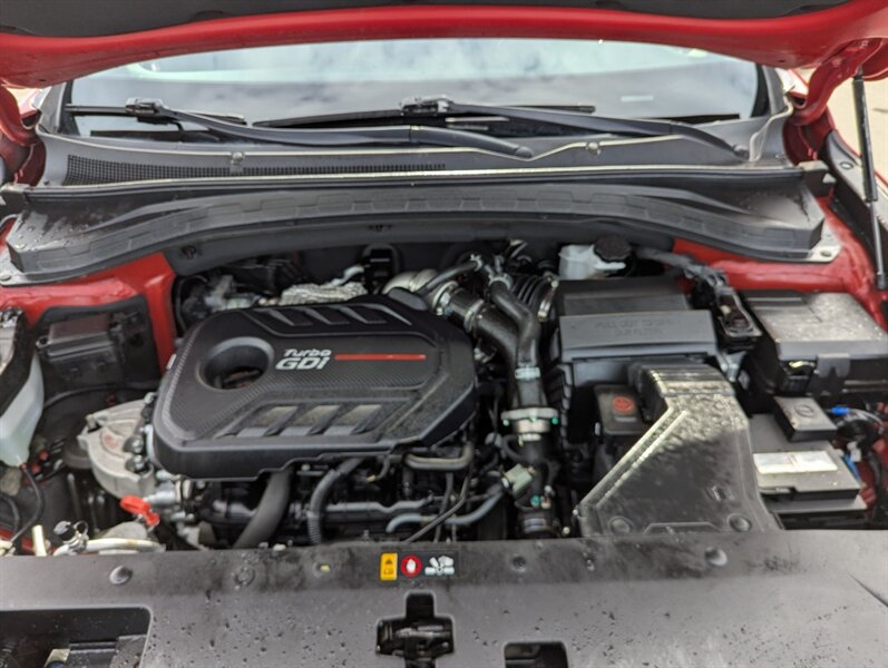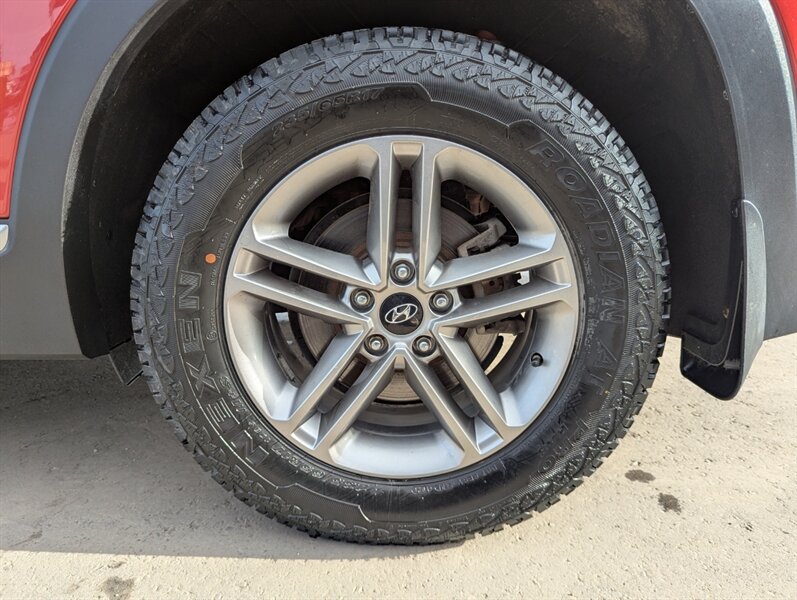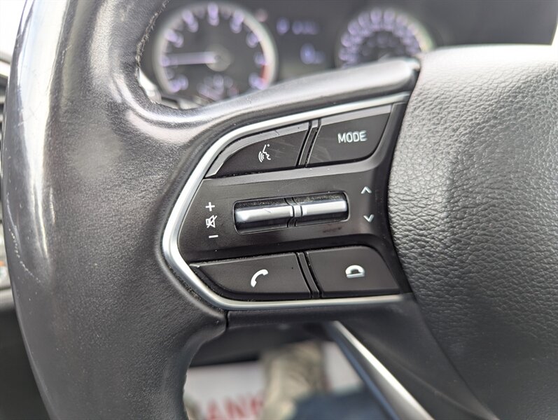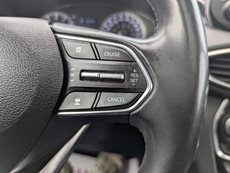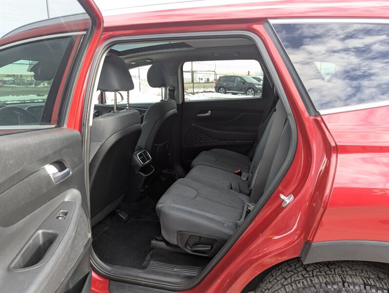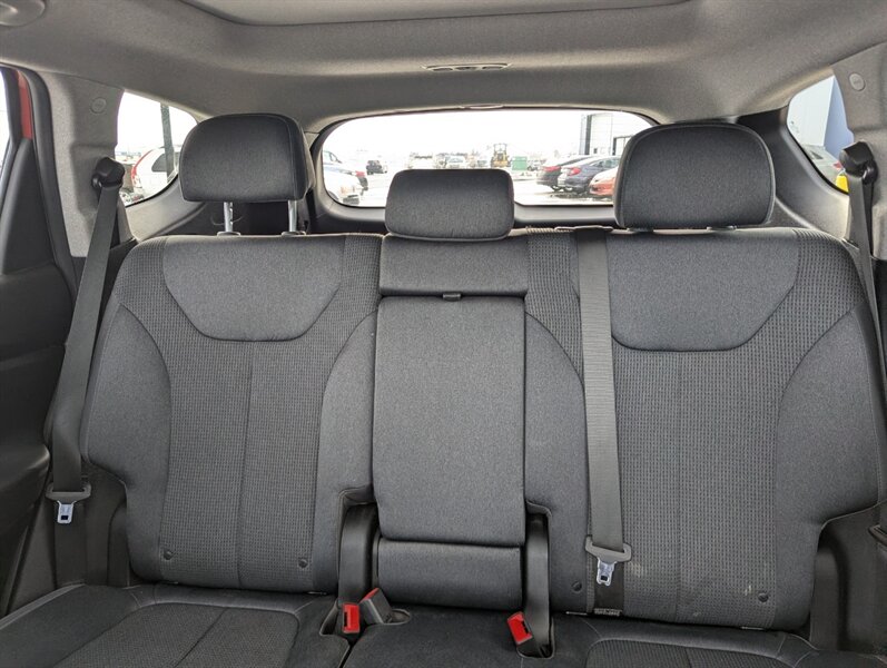 2019 Hyundai SANTA FE Preferred 2.0T — excellent overall condition. Factory-equipped with a 2.0L turbocharged four-cylinder engine (approx. 235 hp, 260 lb-ft) paired with an 8-speed automatic transmission; front-wheel drive is standard with all-wheel drive offered from the factory. Interior seating for five with 60/40 split-folding rear seats and power-adjustable driver’s seat. Standard safety and chassis systems include ABS, electronic stability control, traction control, hill-start assist, multiple airbags (front, side and curtain) and a tire pressure monitoring system. Comfort and convenience features from the factory typically include dual-zone automatic climate control, heated front seats, a leather-wrapped steering wheel, power windows and locks, remote keyless entry, and ample cargo tie-downs. Infotainment is factory-fitted with an 8-inch touchscreen audio system supporting Apple CarPlay and Android Auto, Bluetooth hands-free connectivity, USB inputs and a rearview camera. Higher or optioned factory packages may add features such as blind-spot detection with rear cross-traffic alert, parking sensors, upgraded audio, and leather seating surfaces.