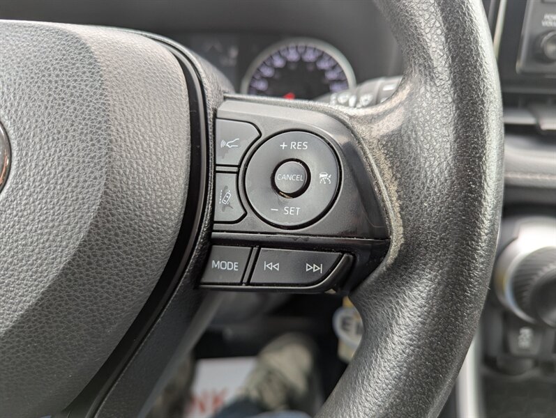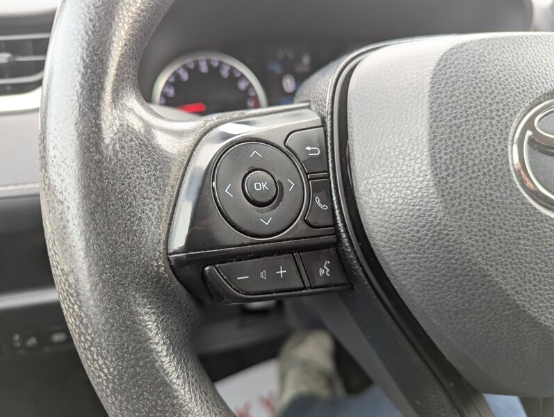 REBUILT TITLE//2020 Toyota RAV4 LE — Silver exterior, Black cloth interior, excellent overall condition with a clean CARFAX. Factory-standard equipment includes a 2.5L 4-cylinder engine paired with an 8-speed automatic transmission (FWD standard, AWD available), Toyota Safety Sense 2.0 driver-assist suite (Pre-Collision System with Pedestrian Detection, Lane Departure Alert with Steering Assist, Lane Tracing Assist, Road Sign Assist, Dynamic Radar Cruise Control, and Automatic High Beams), 17-inch alloy wheels, halogen headlights with LED daytime running lights, rearview camera, 7-inch touchscreen infotainment with Apple CarPlay/Android Auto, Bluetooth and USB ports, fabric seating with 60/40 split-folding rear seats, automatic climate control, power windows/locks and remote keyless entry.