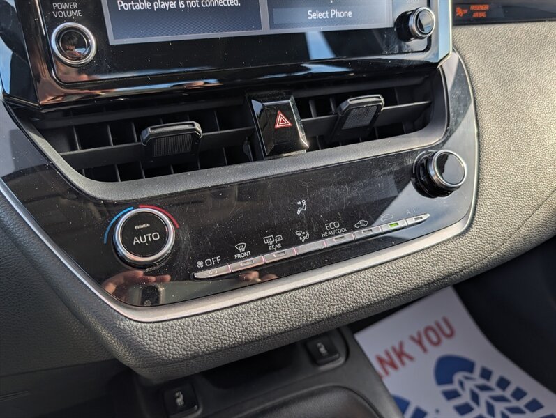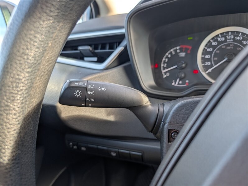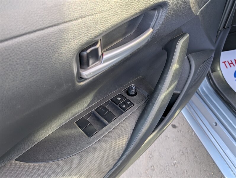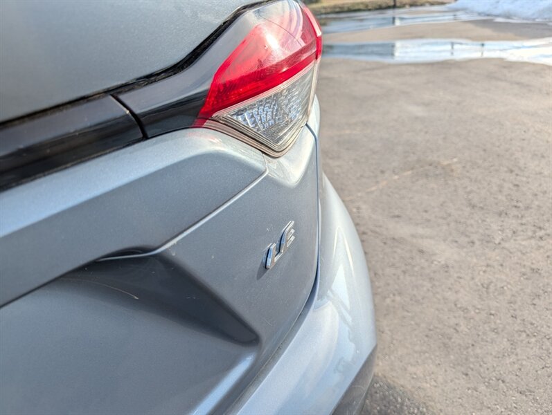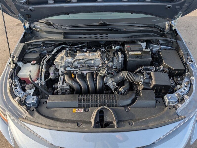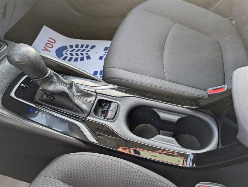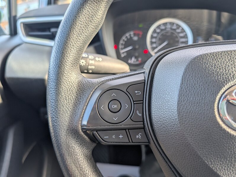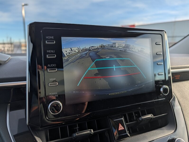 2021 Toyota Corolla LE — excellent overall condition. Factory-standard equipment includes a 1.8L four-cylinder engine paired with a continuously variable (CVT) transmission and front-wheel drive; the full Toyota Safety Sense 2.0 suite (Pre-Collision System with Pedestrian Detection, Dynamic Radar Cruise Control, Lane Departure Alert with Steering Assist and Lane Tracing Assist, Automatic High Beams, Road Sign Assist); and eight airbags plus a backup camera. Comfort and convenience features are cloth seating for five with a 60/40 split-folding rear seat, automatic climate control, remote keyless entry, power windows and locks, tilt/telescoping steering wheel and cruise control. Infotainment is handled by a 7-inch touchscreen with Apple CarPlay and Android Auto compatibility, Bluetooth hands-free/audio, USB connectivity and a six-speaker audio system.