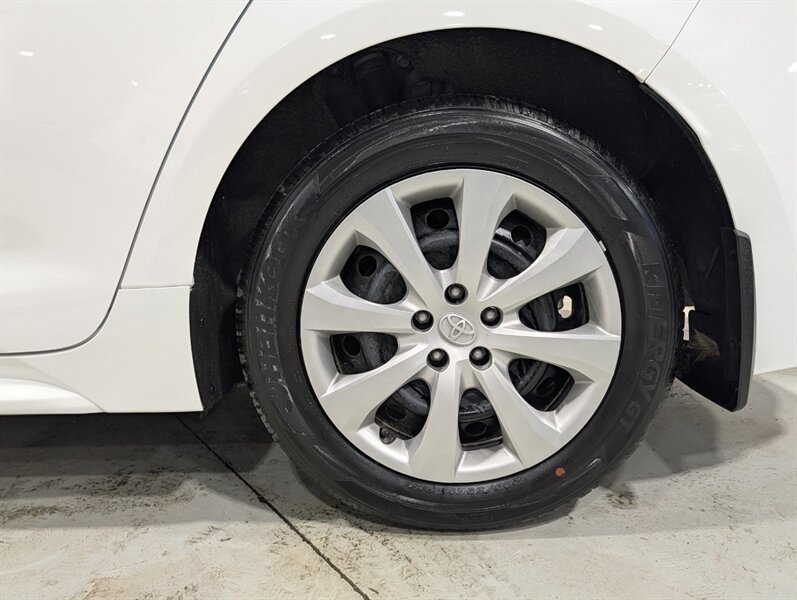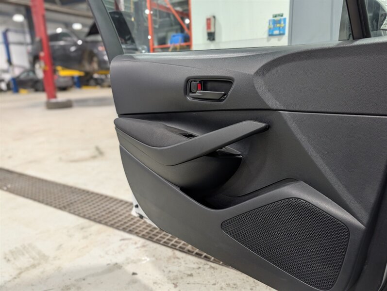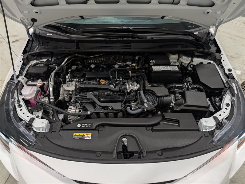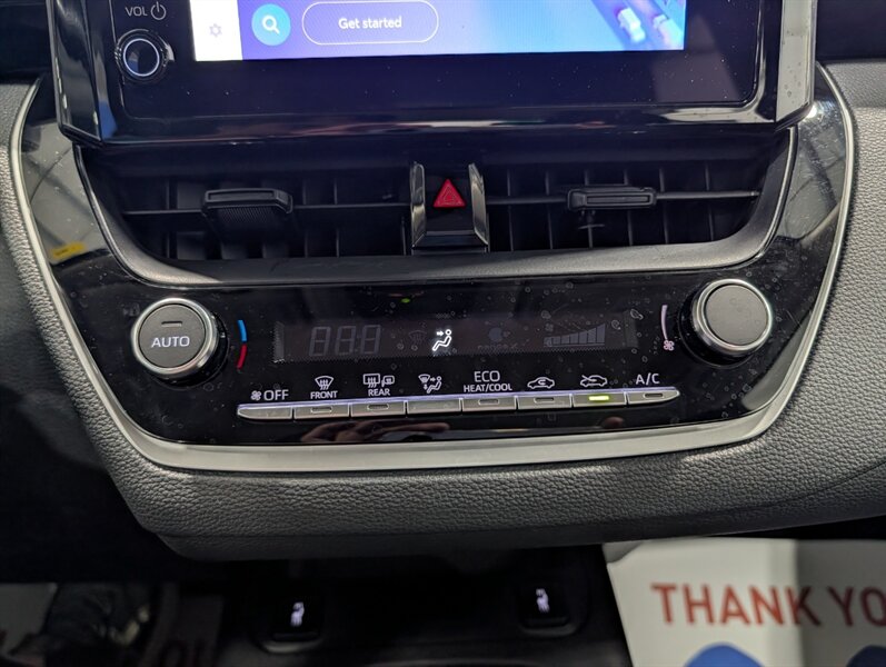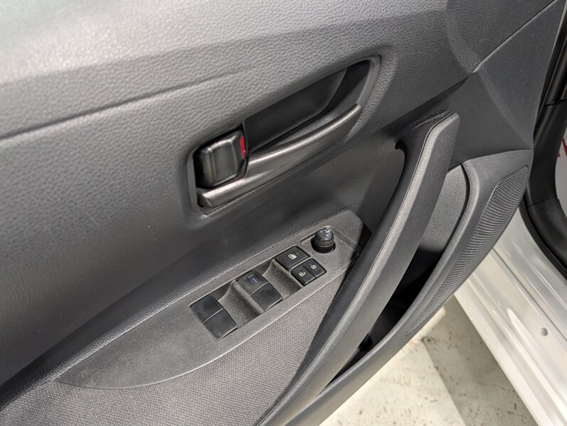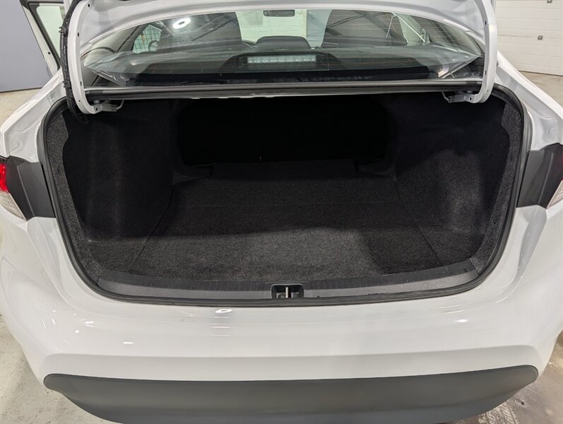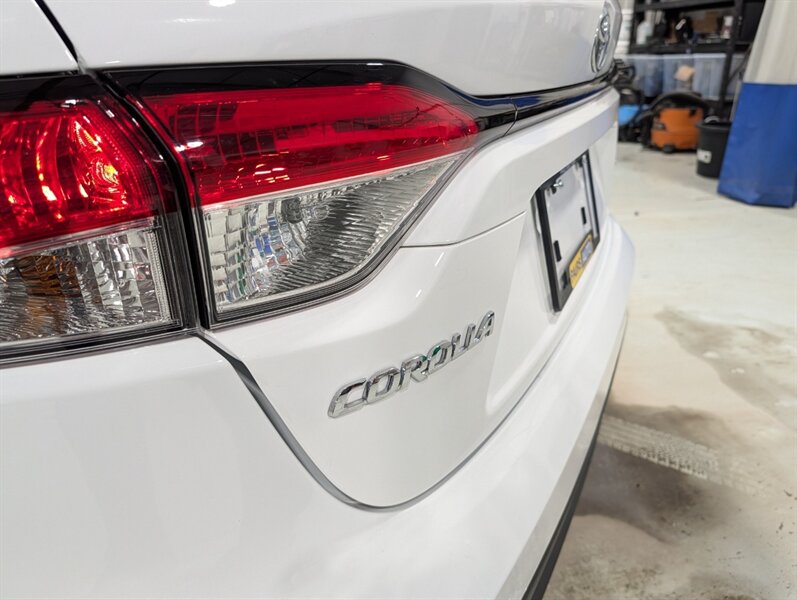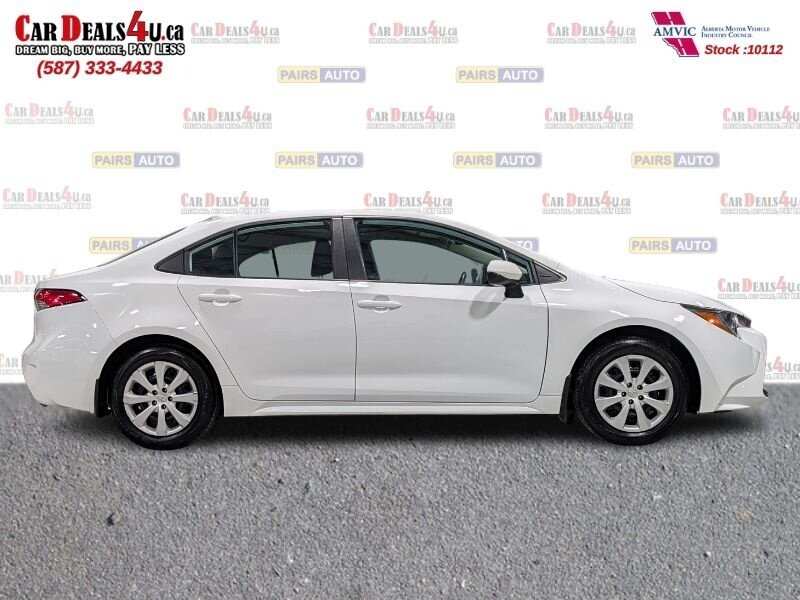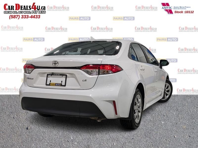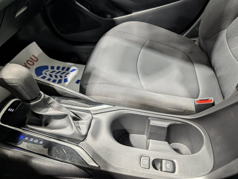 2025 Toyota Corolla LE powered by a 2.0L I4 (169 hp, 151 lb-ft) paired with a CVT. Factory-standard equipment includes the Toyota Safety Sense suite (pre-collision system with pedestrian detection, adaptive/full-speed-range radar cruise control, lane departure/steering assist and lane tracing assist, automatic high beams, and road sign assist), LED exterior lighting, and a rearview camera. Comfort and convenience features include a touchscreen infotainment system with Apple CarPlay and Android Auto, Bluetooth and USB connectivity, cloth seating with a 60/40 split-folding rear seat, power windows and locks with remote keyless entry, steering-wheel audio controls, cruise control, automatic climate control, and 16-inch wheels. Exterior is Celestite with a Black interior; vehicle is in excellent overall condition.